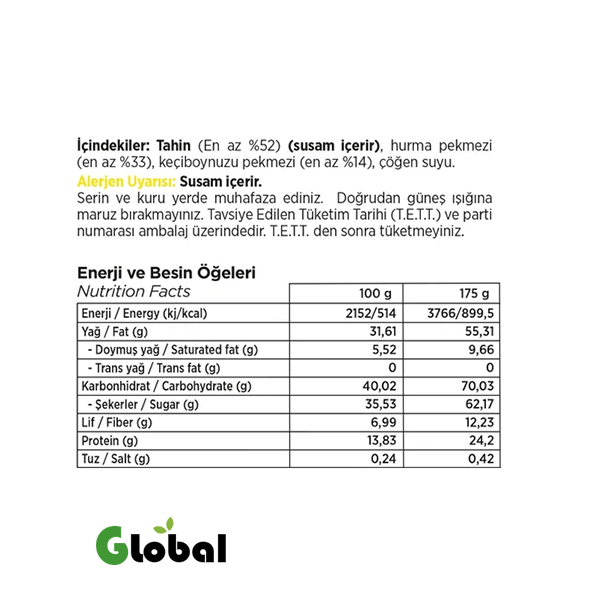 ⚠ يُنصح الأشخاص الذين يعانون من حساسية تجاه السمسم أو أي من المكونات الأخرى بقراءة المكونات جيدًا قبل الاستهلاك.