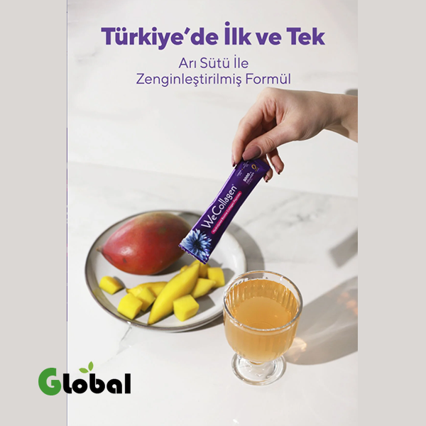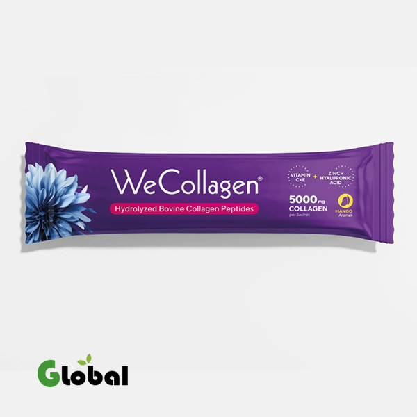 وي كولاجين® هو مكمل غذائي عالي الجودة يحتوي على 5000 ملغ من بيبتيدات الكولاجين المتحللة (من الأبقار) في كل كيس، مدعّم بـ حمض الهيالورونيك، فيتامين C، فيتامين E، البيوتين، الزنك، الكولاجين من النوع الثاني، ونكهات طبيعية لذيذة بطعم المانجو.
